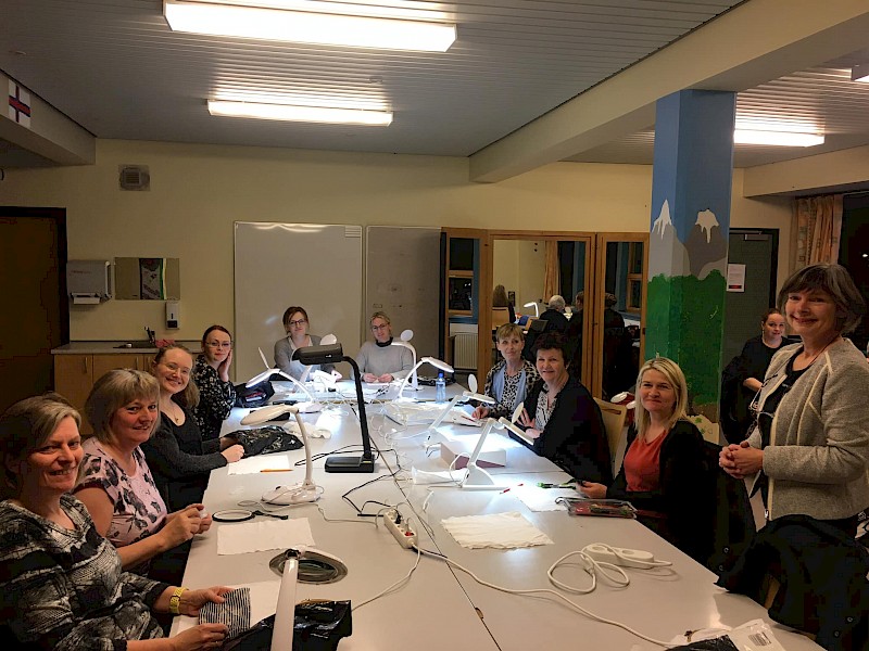 Hesar damurnar hava broderað alt vikuskiftið á tamb saman við Eydnu Dalsgaard, undirvísara hjá Tórshavnar Kvøldskúla! Hetta er ein liður í eini røð av trimum vikuskiftum vid undirvísaranum Eydnu Dalsgaard úr Havn. Tær hava lært ymsar nýggjar teknikkir at brúka. Næstu skeiðini verða í februar og mars
